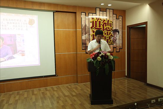 本期道德讲堂活动按照《“道德讲堂”实施方案》的安排,由“八部分”组成,即“做反省”、“唱歌曲”、“诵经典”、“学模范”、“发善心”、“鞠躬礼”、“做善事”和“送吉祥”。活动中,全体员工静默1分钟,反思自己的日常言行,同唱了《感恩的心》,学习感恩的生活态度,懂得爱,懂得奉献。大家还诵读了《礼运大同篇》片段,通过学习古籍,陶冶道德情操,传承传统美德。全体员工观看了台州独臂邮递员《单臂鸿雁铺就温情邮路》先进事迹短片,学习了他在只有一只手的情况下,仍然忘我工作,默默奉献的先进事迹,学习他崇高的职业美德和自我奉献的高贵品质。该局全省先进周小海为大家讲述了自己的优秀事迹和经验分享,参加活动人员分享了自己的感想和人生感悟,充分感受到了道德的力量。活动还进行了募捐书籍活动,员工们纷纷捐书,以实际行动践行高尚道德准则。活动最后,全体人员起立向“德”字鞠躬,活动还向现场人员赠送专门为道德讲堂设计的明信片。