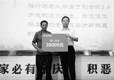 在当天举行的“道德讲堂”上,温州银行党委书记殷乐人把3.8万元捐赠款交到李志华老人手上,这笔捐赠款由温州银行员工募集。