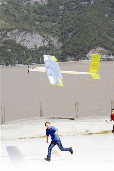 据裁判葛晓鸿介绍,“太阳能飞机”项目只有31支队伍参赛,多支队伍因比赛飞机故障遗憾退赛,其中包括东道主温州大学队。每架航模飞机有两轮试飞,取其中飞行时间较长的一次为比赛成绩,起飞后在空中飞行30分钟算是最好成绩了。