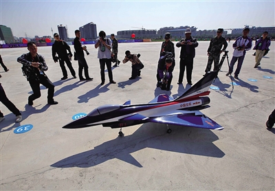 在本次锦标赛开幕式上,最具科技含量的航模当属“歼10”。它的外形采用我国自主研发的歼10战斗机等比例缩小仿制,同样采用单发涡喷发动机。在发动机强大的推力下,升空速度快得惊人,甚至还能在空中“停车”。当它降落后缓缓开到主席台前刹车时,引发全场观众的欢呼。