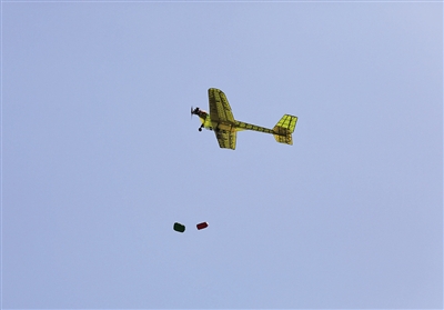 自重3公斤的航模,硬生生将重达18公斤的货物提起,实现准确“空投”。