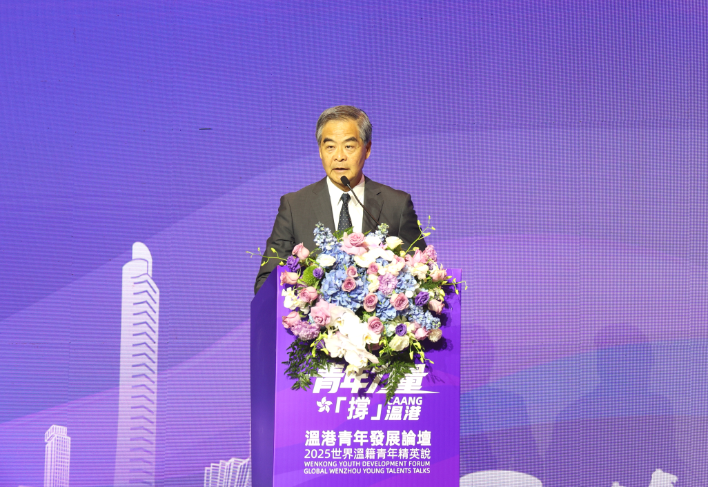10月26日,“温港青年发展论坛·2025世界温籍青年精英说”活动在香港举行。全国政协副主席梁振英,浙江省副省长、温州市委书记张振丰出席活动并致辞。