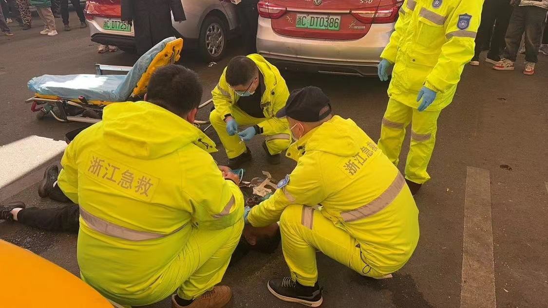 动车南站急救点急救人员迅速集结,风驰电掣般驶向呼救点。这时另一边,现场人员包括温州铁路南站综合管理中心管理服务大队队员金耀辉、温州市交通运输行政执法队二大队三中队队长张国清与蓄车场内其他热心司机一道,正合力对发病司机展开救治,采取了一系列堪称“教科书”式的急救措施,为救治赢得了宝贵时间。