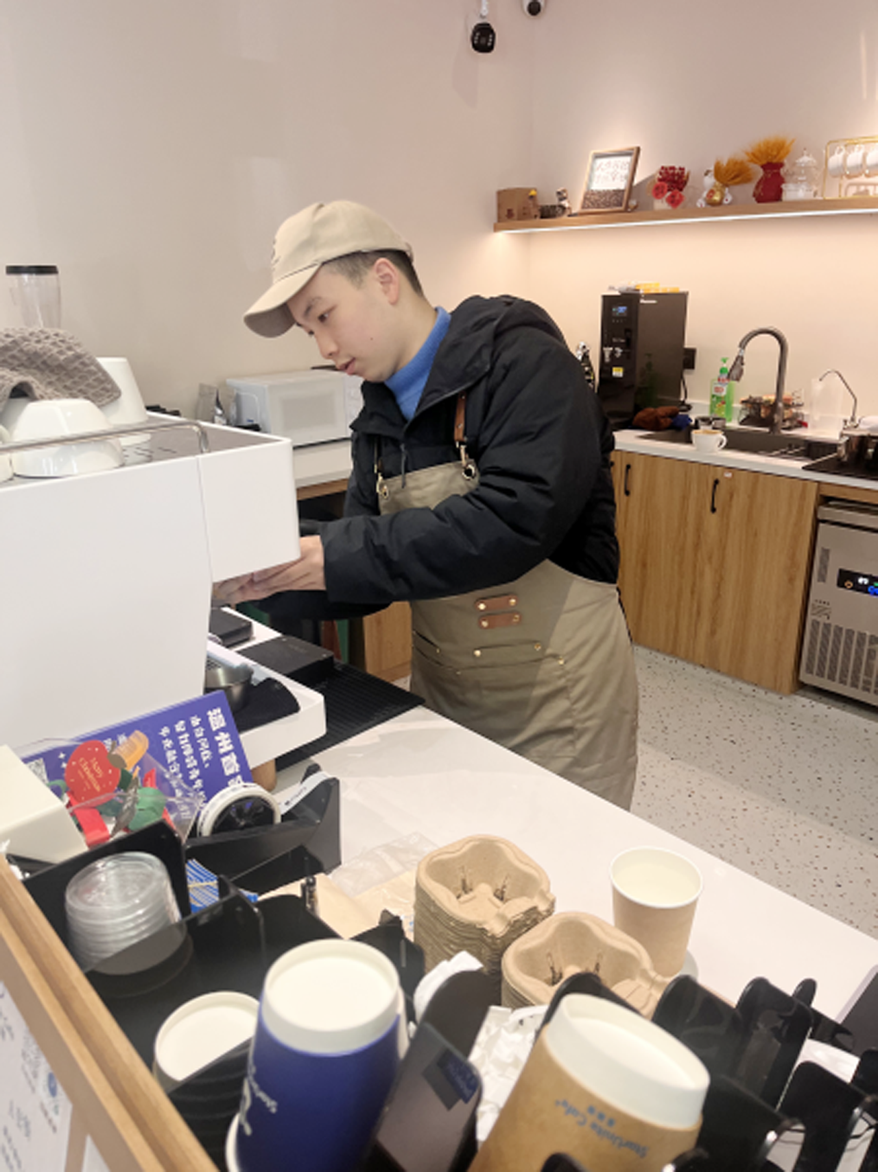 “他现在喜欢自己的工作,作为家长就觉得已经够了。”皓皓爸爸表示,“他现在自己坐公交车上下班,让人省心很多。”皓皓一家来自甘肃,皓皓爸爸目前在温州从事房地产相关业务。他告诉记者,皓皓在3岁的时候被检查出患有孤独症,进行了多年的康复治疗,目前整体情况良好。2024年年底开始在“星融咖”进行咖啡制作方面的培训。“最理想的情况还是希望他能够真正地融入社会,拥有一技之长能自食其力。”皓皓爸爸说。