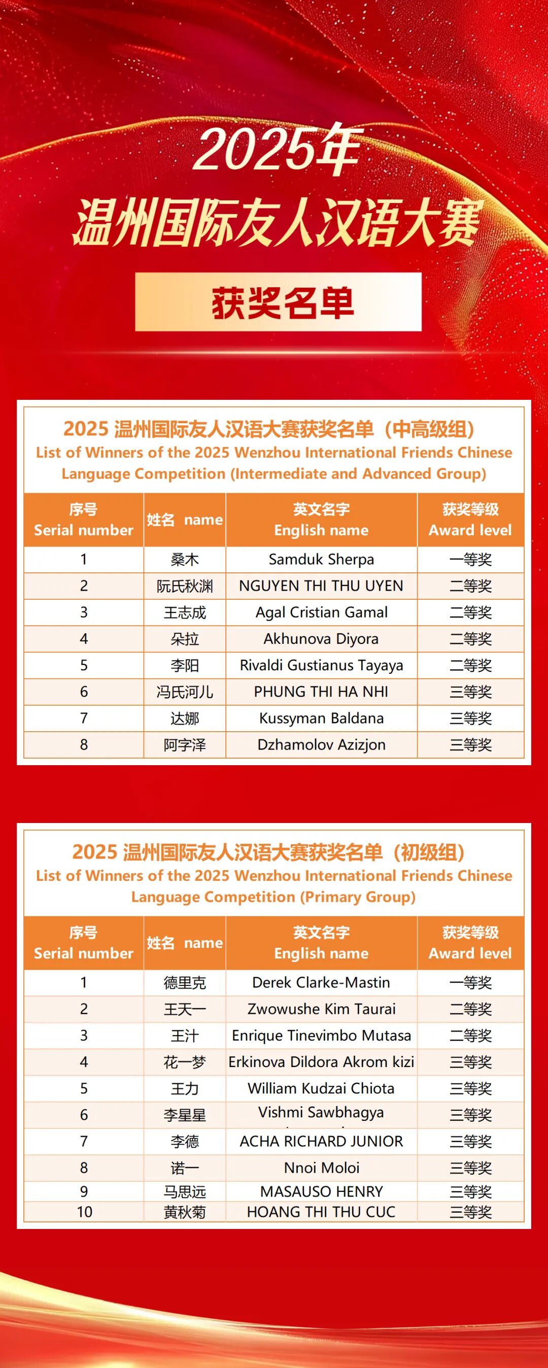 原标题:2025温州国际友人汉语大赛获奖名单揭晓!