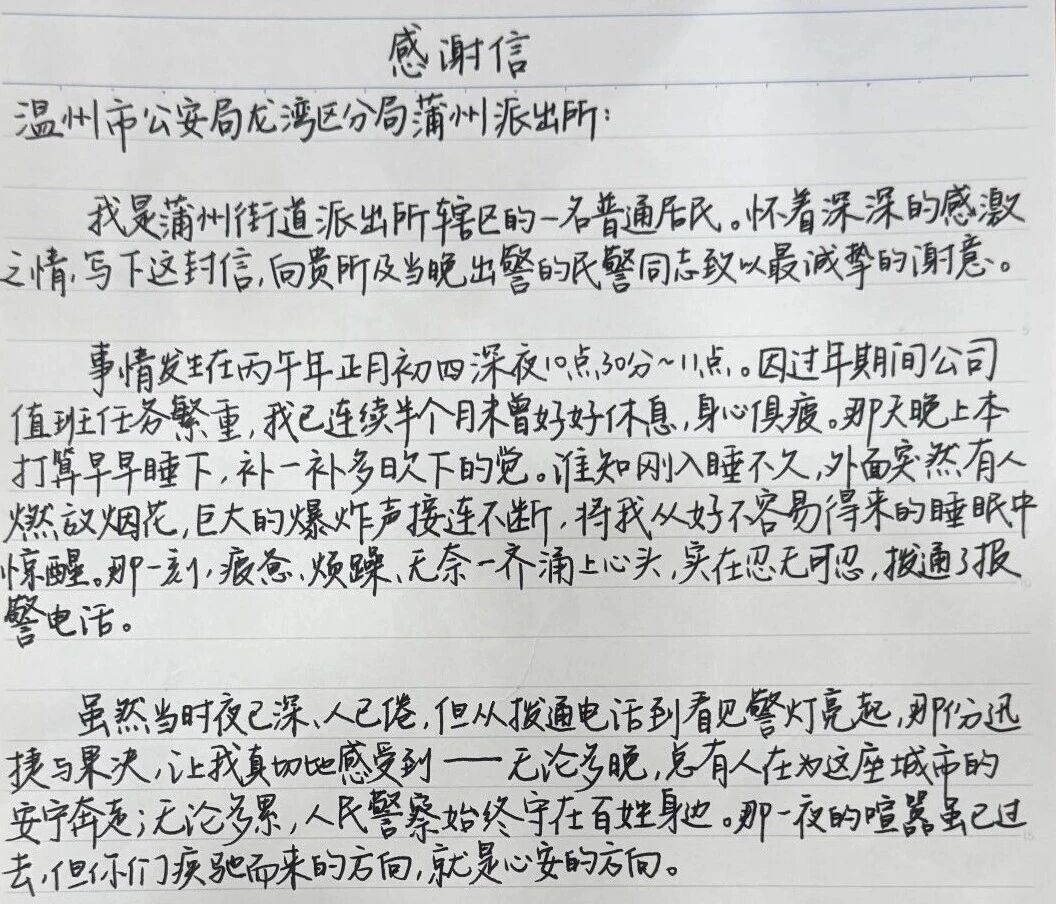 “你们疾驰而来的方向,就是心安的方向。”陈女士在感谢信中这样写道,那一夜的喧嚣虽已散去,但民警疾驰而来的身影,却成了她心中最踏实的依靠。