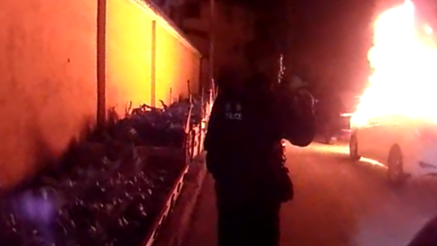原标题:揪心!民警灭火时车辆突发爆燃……