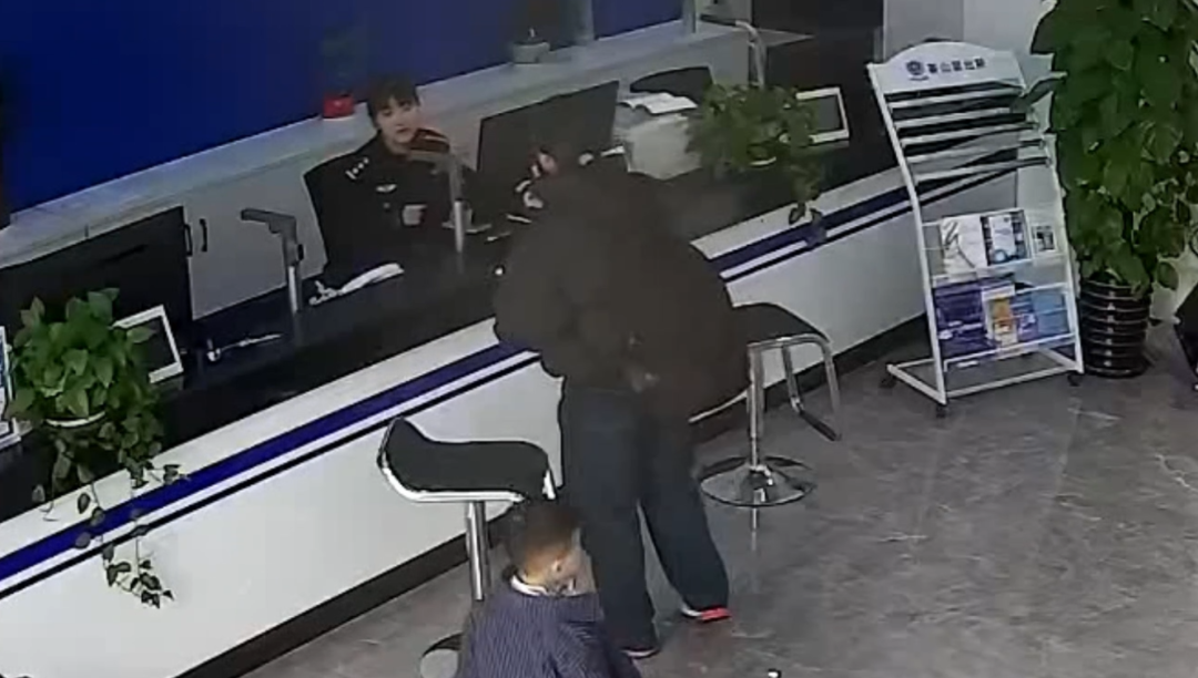 办事窗口前的小男孩