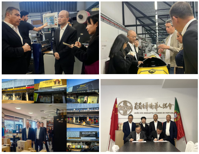 同时,代表团深入走访当地重点商圈与优质企业,在产业合作、市场拓展、技术协同等方面精准发力、高效对接。走访葡萄牙知名标签印刷标杆企业RCM,与公司总经理罗德里戈·莫卡(Rodrigo Moca)洽谈我市印刷设备贸易出口合作项目,助力温州企业拓市场争订单。在维拉贡德市市政议员苏珊娜·里贝罗(Susana Ribeiro)的陪同下,考察全球最大的皮划艇制造商之一NELO,与负责人努诺·拉莫斯(Nuno Ramos)对接水上运动装备研发与生产合作,赋能温州体育用品产业转型升级。实地考察维拉贡德市商贸区,调研当地商贸流通、市场渠道与华商发展情况,并推动平阳县政府与葡萄牙华侨华人总会签署贸易采购合作战略框架协议,促进资源双向对接。
