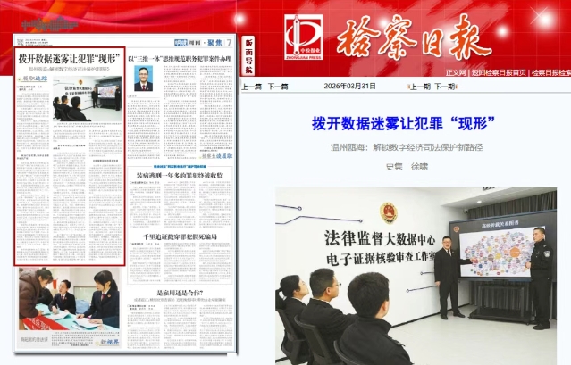原标题:检察日报丨瓯海检察:解锁数字经济司法保护新路径