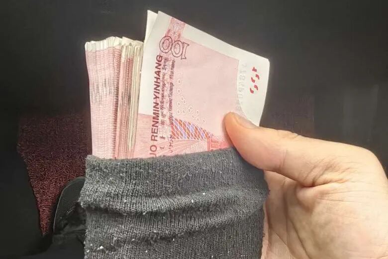 他思来想去将现金塞进袜子